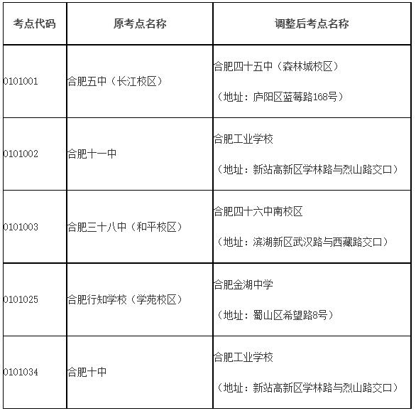 關于調整2022年10月自學考試合肥市部分考點的公告