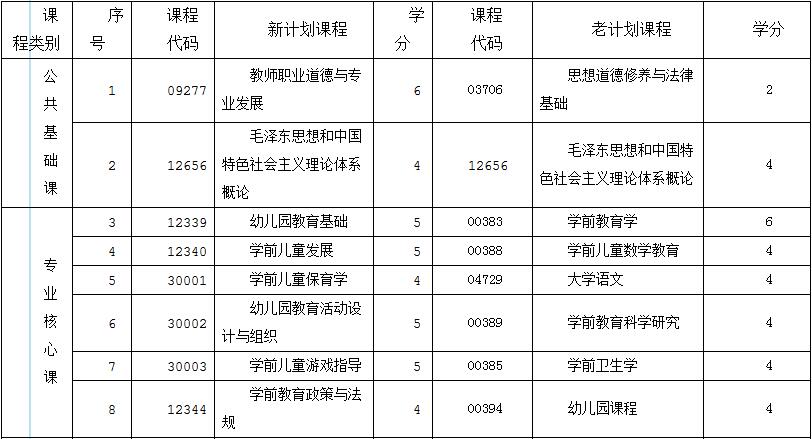 040101學前教育(專科)新老計劃對照表