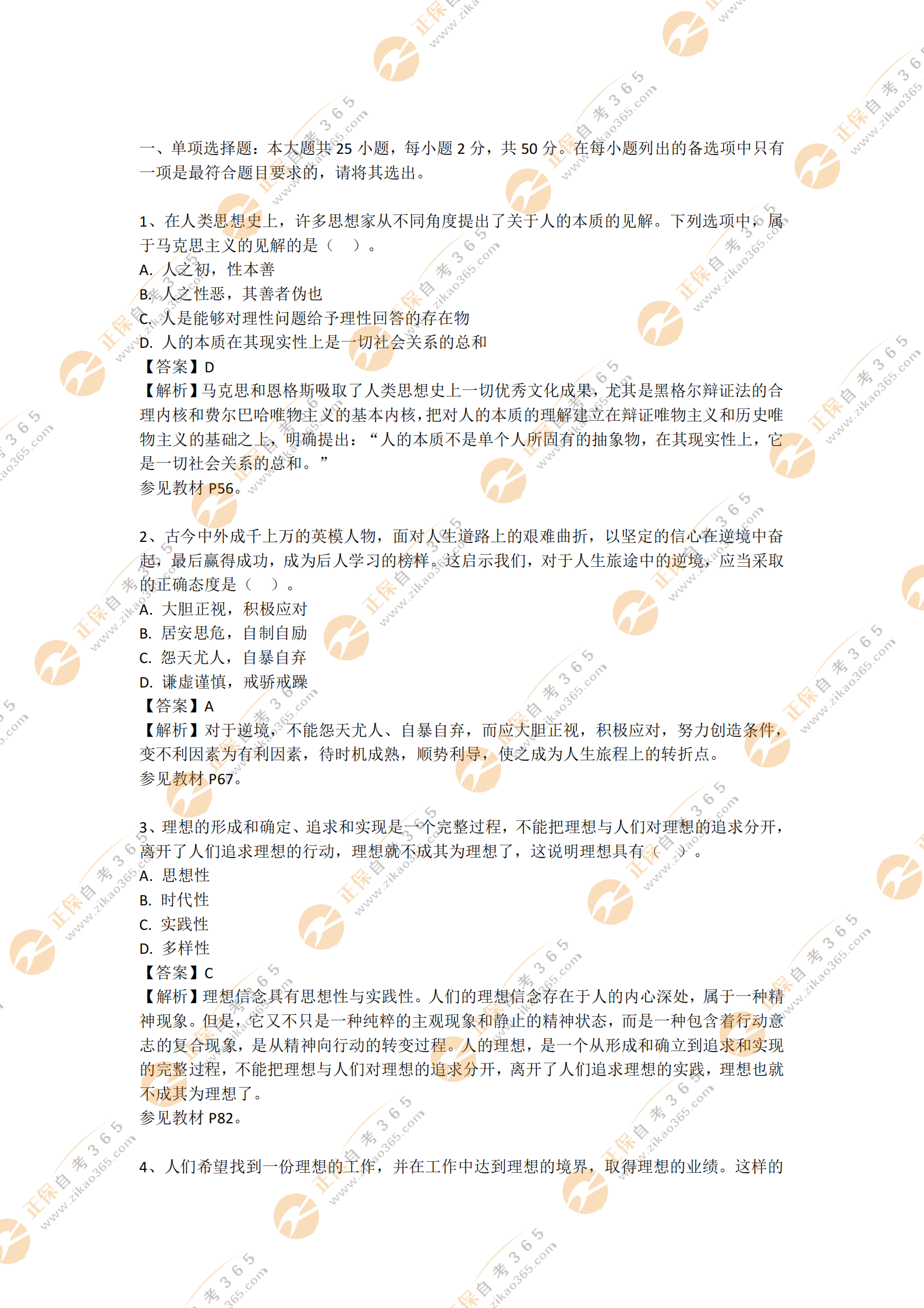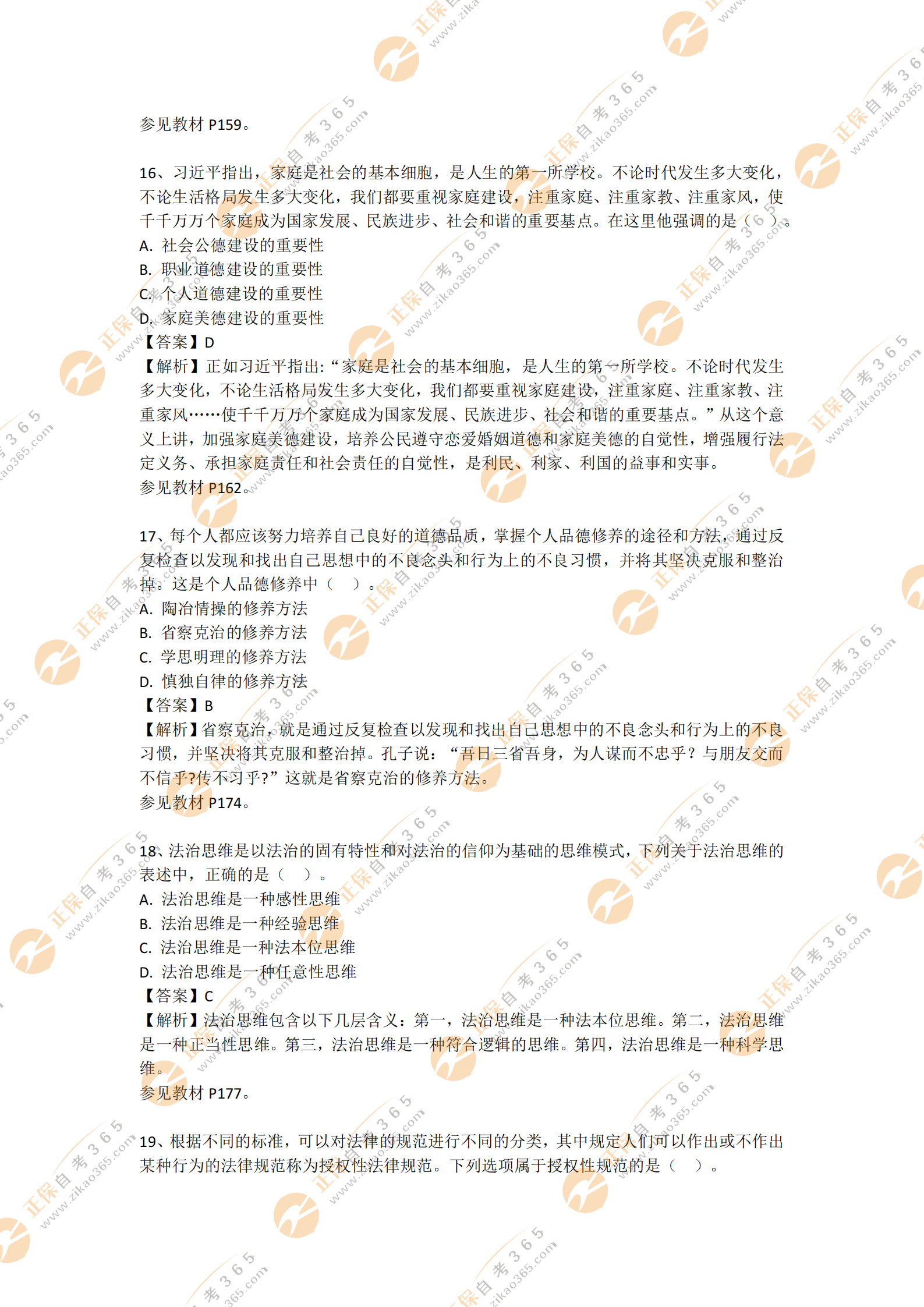 自考365提示您:以上內(nèi)容為2021年4月自考思想道德修養(yǎng)與法律基礎(chǔ)部分試題答案及解析,關(guān)注本站,更多科目試題及答案解析將陸續(xù)發(fā)布。