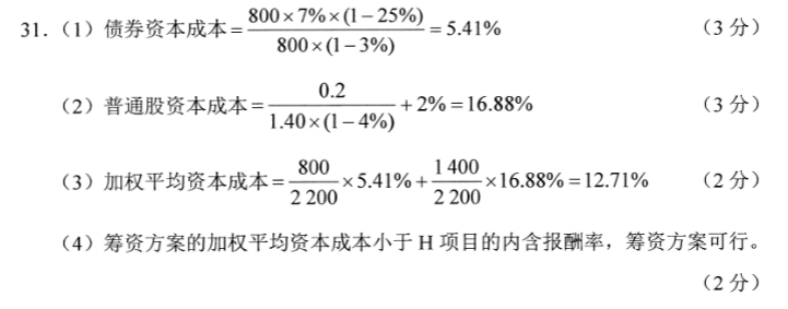 (4)如果H項目的內含報酬率為16%,判斷籌資方案是否可行。