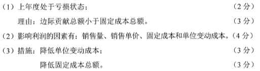 (3)指出東北分公司可以采取的降低盈虧臨界點銷售量的措施。(6分)