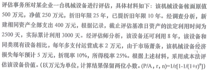 評(píng)估事務(wù)所對(duì)某企業(yè)一臺(tái)機(jī)械設(shè)備進(jìn)行評(píng)估,具體材料如下: