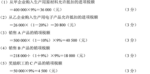 (2)計算從乙企業(yè)購入生產(chǎn)用電子產(chǎn)品允許抵扣的進項稅額;