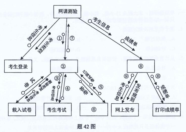 請寫出題42圖中的數字①②③④⑤⑥⑦⑧⑨⑩所對應的模塊名或數據流名前的大寫字母。