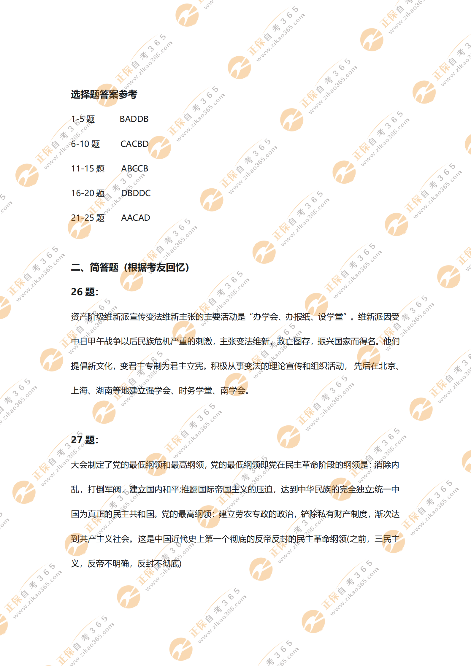 2021年4月自考中國近現(xiàn)代史綱要考試結(jié)束后,自考365網(wǎng)校老師根據(jù)考友回憶整理了“2021年4月自考《中國近現(xiàn)代史綱要》考試部分試題及答案解析”,想提前預(yù)知自己考試成績(jī)的考生快來對(duì)答案吧!