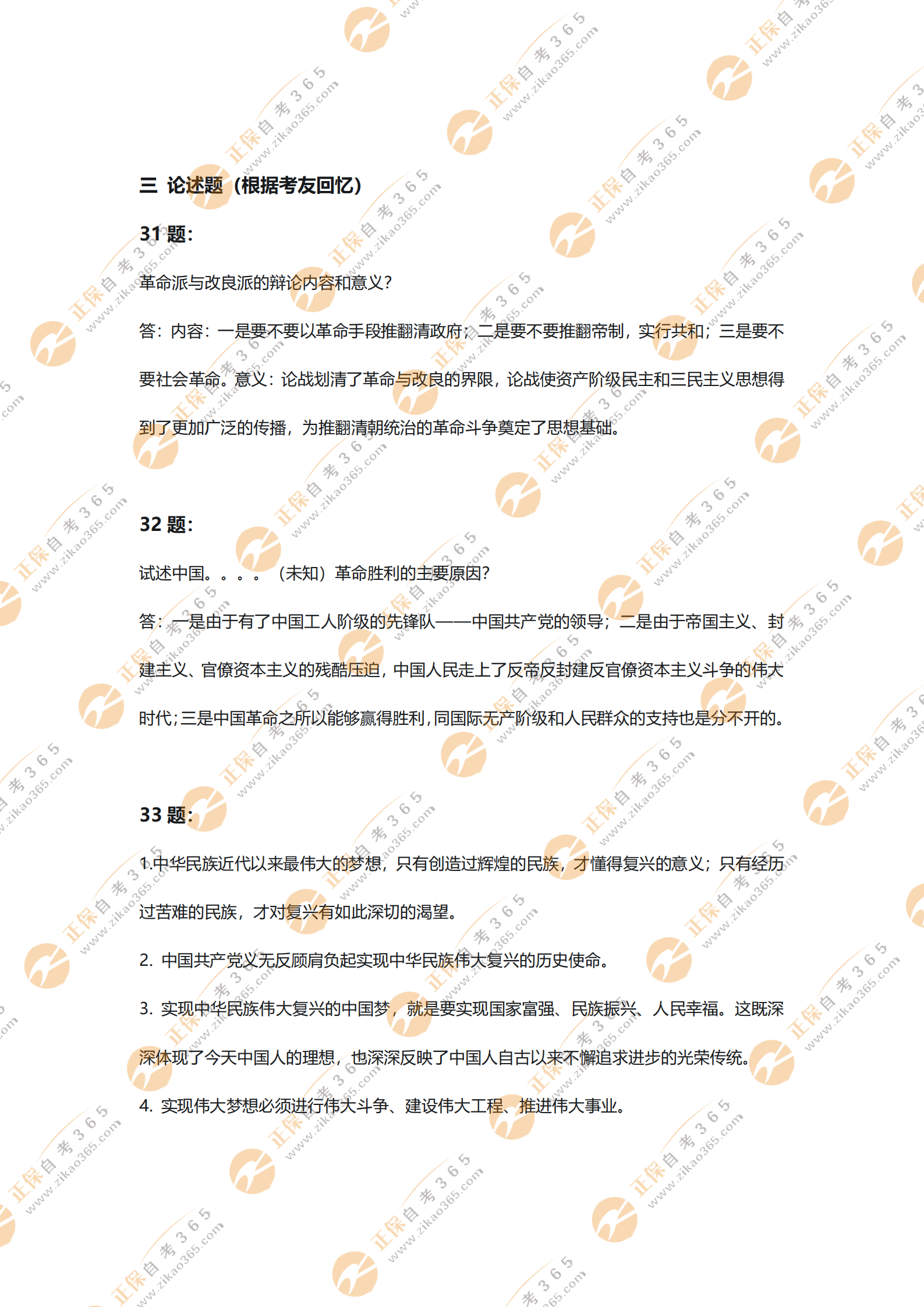 2021年4月自考中國近現(xiàn)代史綱要試題及答案(考友回憶版)