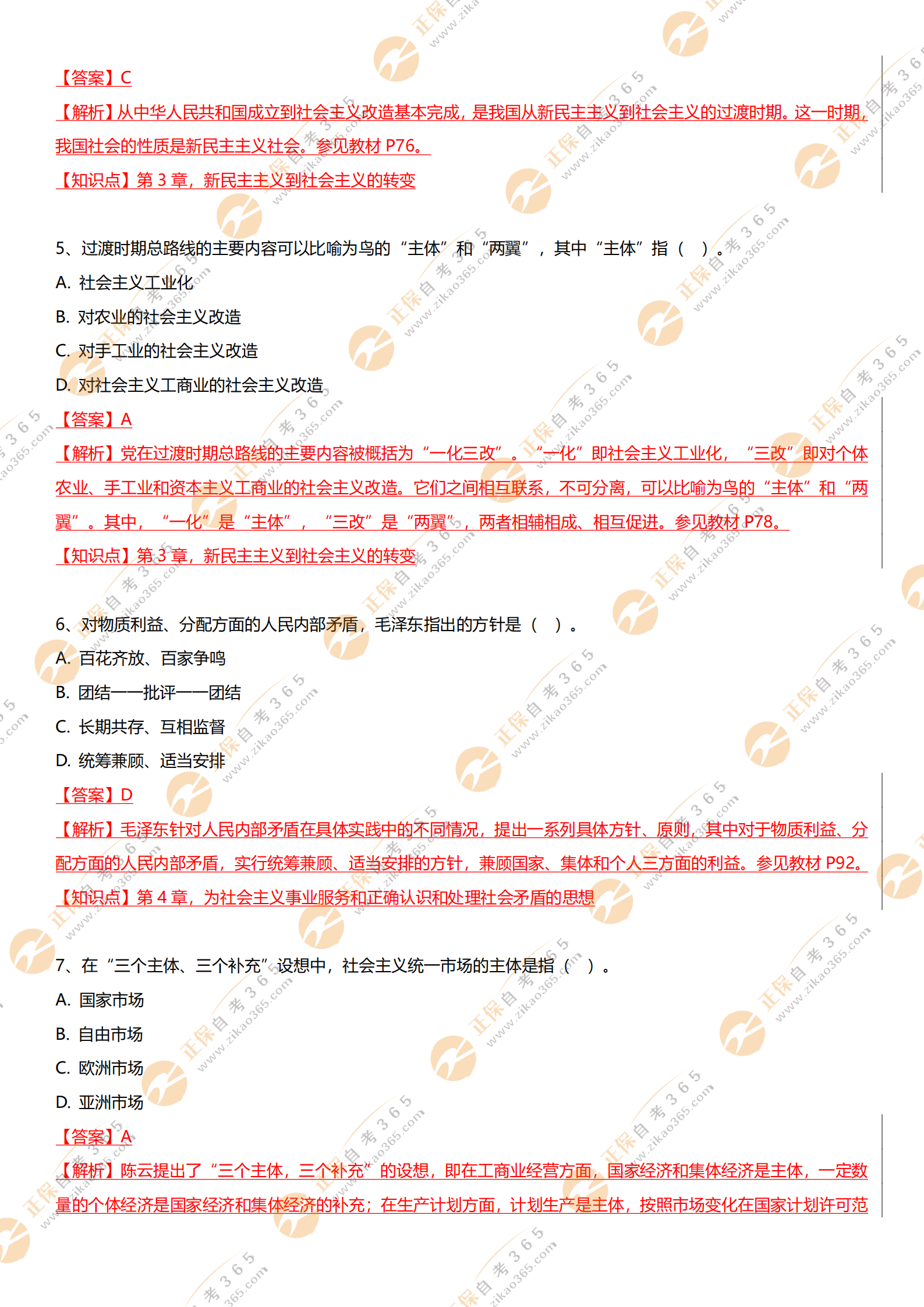 自考365提示您:以上內容為2021年4月自考馬克思主義基本原理概論選擇題、簡答題、材料題答案及解析,關注本站,更多科目試題及答案解析將陸續(xù)發(fā)布。