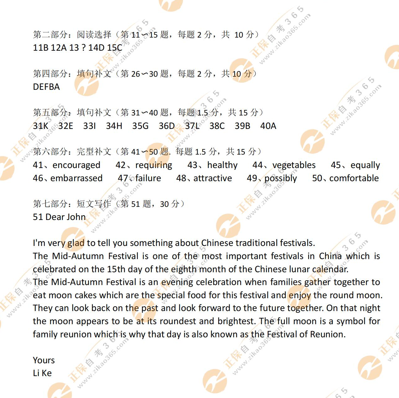 自考365提示您:以上內(nèi)容為2021年4月自考英語(二)部分真題答案及解析,關(guān)注本站,更多科目真題及答案解析將陸續(xù)發(fā)布。