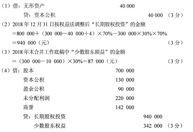 (3)計算2018年年末合并工作底稿中“少數股東損益”的金額;