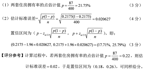 (2)以95% (z0.025=1.96)的置信度估計(jì)全部居民兩套住房擁有率的置信區(qū)間。