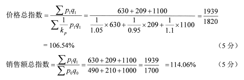 計算:三種商品的價格總指數(shù)和銷售額總指數(shù)。