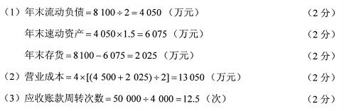 某公司年初存貨為4 500萬元,應(yīng)收賬款年平均余額4 000萬元。年末流動(dòng)比率為2、速動(dòng)比率為1.5,年末流動(dòng)資產(chǎn)合計(jì)為8 100萬元。存貨年周轉(zhuǎn)次數(shù)為4次,本年?duì)I業(yè)收入50000萬元。假設(shè)流動(dòng)資產(chǎn)中除存貨外均為速動(dòng)資產(chǎn)。