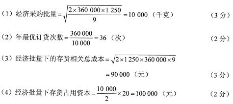 某企業(yè)甲材料的年需求量為360 000千克,該材料外購單位成本為20元,預計每次訂貨費用為1 250元,單位存貨年儲存成本為9元。一年按照360天計算。