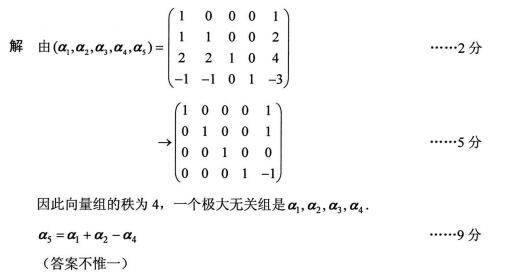 求向量組α1=(1,1,2,-1)T,α2=(0,1,2,-1)T,α3=(0,0,1,0)T,α4=(0,0,0,1)T,α5=(1,2,4,-3)T的秩和一個(gè)極大無關(guān)組,并把其余向量用該極大無關(guān)組線性表示.