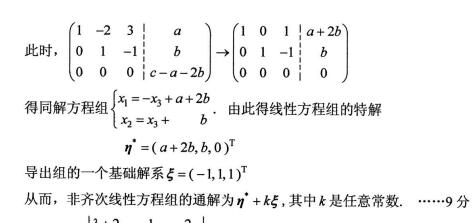 (其中a,b,c不全為零的常數(shù)),當a,b,c滿足什么條件時,方程組有無窮多解?并求其通解(要求用它的一個特解和導出組的基礎解系表示).