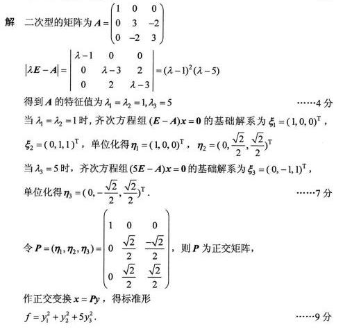 求正交變換x=Py,將二次型f(x1,x2,x3)=x12+3x22+3x32-4x2x3化為標(biāo)準(zhǔn)型.