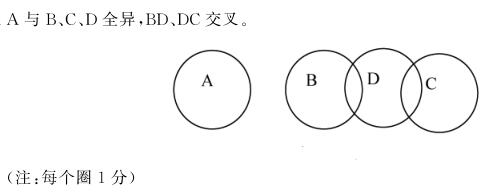 用歐拉圖表示下列概念之間的關(guān)系:法院(A),法官(B),律師(C),黨員(D)。