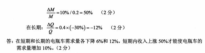 假設對電瓶車的需求收入彈性,短期為0.2,長期為0.4。如果收入下降30%,這對電瓶車的需求量在短期和長期有何影響?此外,短期內(nèi)收入上漲多少,才能使電瓶車的消費量增加10%?(要求寫出公式)