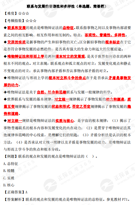 2023年10月自考《馬克思主義基本原理概論》核心考點:聯(lián)系與發(fā)展的普遍性和多樣性