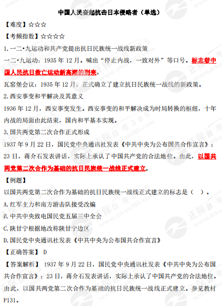 2023年10月自考《中國近現(xiàn)代史綱要》核心考點:中國人民奮起抗擊日本侵略者