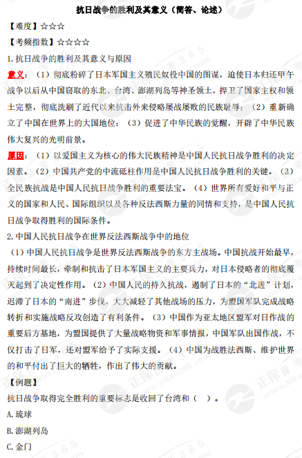 2023年10月自考《中國近現代史綱要》核心考點:抗日戰(zhàn)爭的勝利及其意義