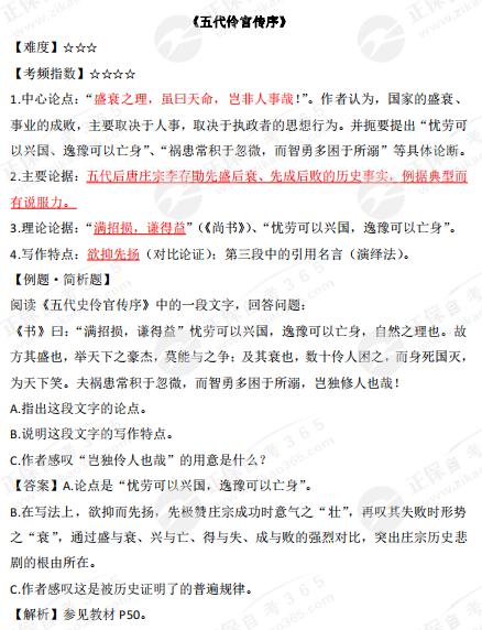 2023年10月自學考試備考正在進行中,自考365網校為各位考生整理了2023年10月自考公共課《大學語文》議論性散文部分的高頻考點——《五代伶官傳序》,正在復習的同學快來查收!