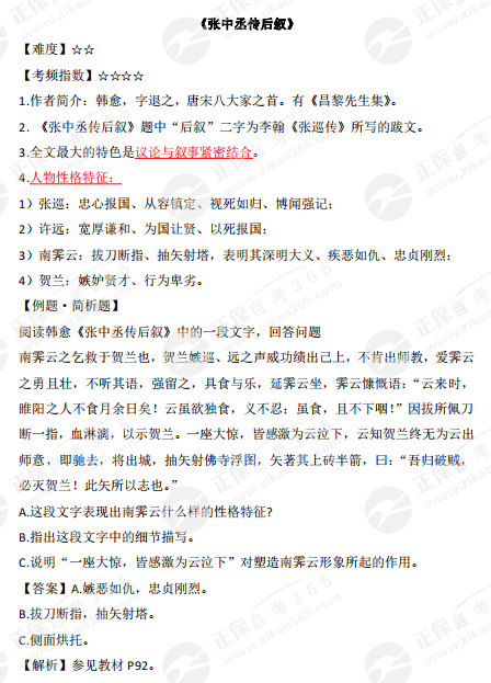 2023年10月自考《大學(xué)語文》高頻考點(diǎn):《張中丞傳后敘》