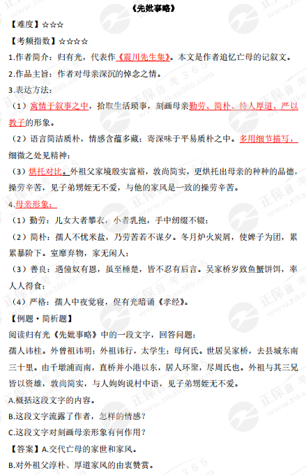 2023年10月自考《大學(xué)語文》高頻考點(diǎn):《先妣事略》