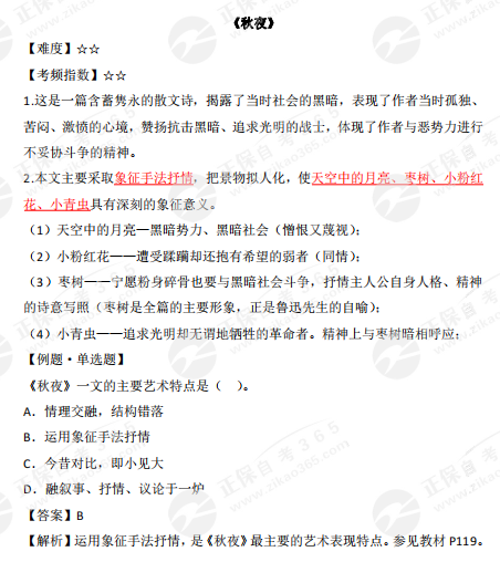 2023年10月自學(xué)考試備考正在進(jìn)行中,自考365網(wǎng)校為各位考生整理了2023年10月自考公共課《大學(xué)語(yǔ)文》記敘性散文部分的高頻考點(diǎn)——《秋夜》,正在復(fù)習(xí)的同學(xué)快來(lái)查收!