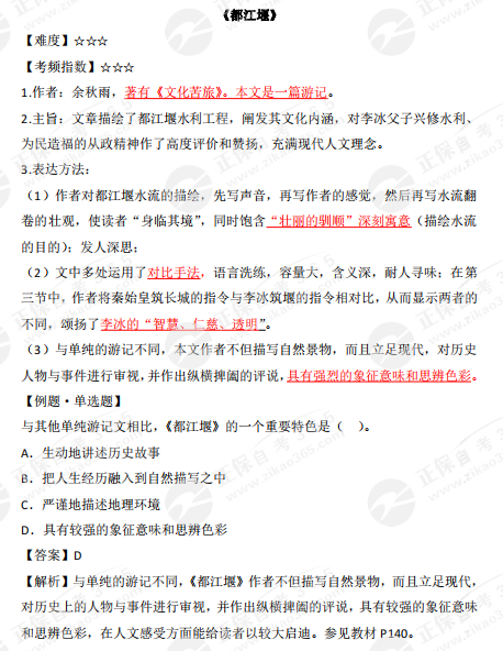 2023年10月自考《大學(xué)語文》高頻考點:《都江堰》