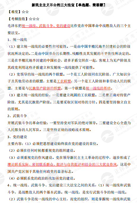 2023年10月自學(xué)考試備考正在進(jìn)行中,自考365網(wǎng)校為各位考生整理了2023年10月自考公共課《毛澤東思想和中國特色社會主義理論體系概論》第二章新民主主義革命理論的高頻考點——新民主主義革命的三大法寶,正在復(fù)習(xí)的同學(xué)快來查收!