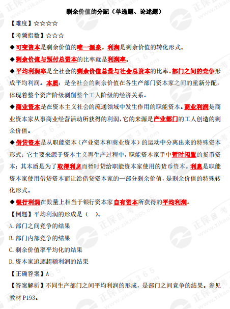 2023年10月自考《馬克思主義基本原理概論》核心考點:剩余價值的分配