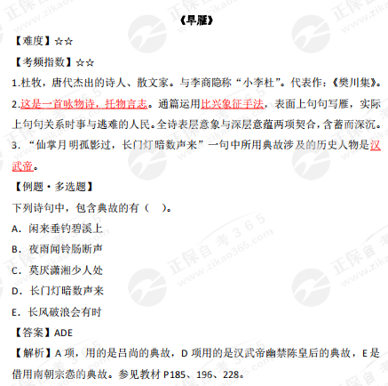 2023年10月自學(xué)考試備考正在進(jìn)行中,自考365網(wǎng)校為各位考生整理了2023年10月自考公共課《大學(xué)語(yǔ)文》詩(shī)歌部分的高頻考點(diǎn)——《早雁》,正在復(fù)習(xí)的同學(xué)快來(lái)查收!