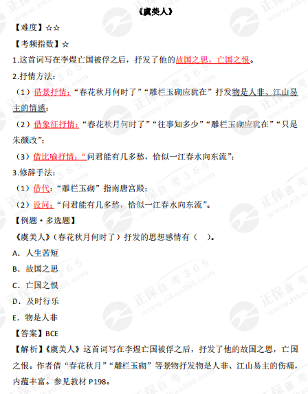 2023年10月自考《大學(xué)語文》高頻考點(diǎn):《虞美人》