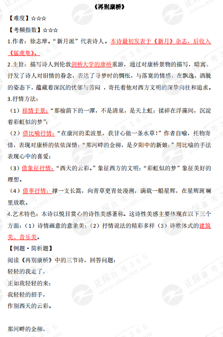 2023年10月自考《大學(xué)語文》高頻考點(diǎn):《再別康橋》