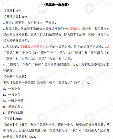2023年10月自考《大學(xué)語文》高頻考點(diǎn):《我愿是一條急流》