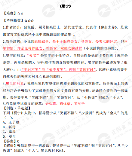 2023年10月自學考試備考正在進行中,自考365網(wǎng)校為各位考生整理了2023年10月自考公共課《大學語文》小說部分的高頻考點——《嬰寧》,正在復習的同學快來查收!