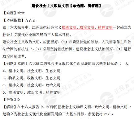 2023年10月自學(xué)考試備考正在進(jìn)行中,自考365網(wǎng)校為各位考生整理了2023年10月自考公共課《毛澤東思想和中國(guó)特色社會(huì)主義理論體系概論》第六章“三個(gè)代表”重要思想的高頻考點(diǎn)——建設(shè)社會(huì)主義政治文明,正在復(fù)習(xí)的同學(xué)快來(lái)查收!