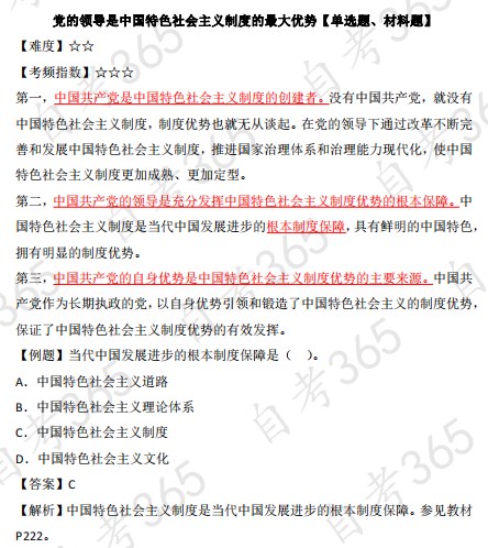2023年10月自考《毛澤東思想和中國特色社會主義理論體系概論》高頻考點:黨的領(lǐng)導(dǎo)是中國特色社會主義制度的最大優(yōu)勢