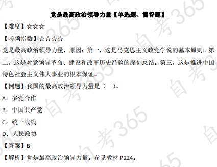 2023年10月自學(xué)考試備考正在進(jìn)行中,自考365網(wǎng)校為各位考生整理了2023年10月自考公共課《毛澤東思想和中國特色社會(huì)主義理論體系概論》第十四章堅(jiān)持和加強(qiáng)黨的領(lǐng)導(dǎo)——黨是最高政治領(lǐng)導(dǎo)力量,正在復(fù)習(xí)的同學(xué)快來查收!
