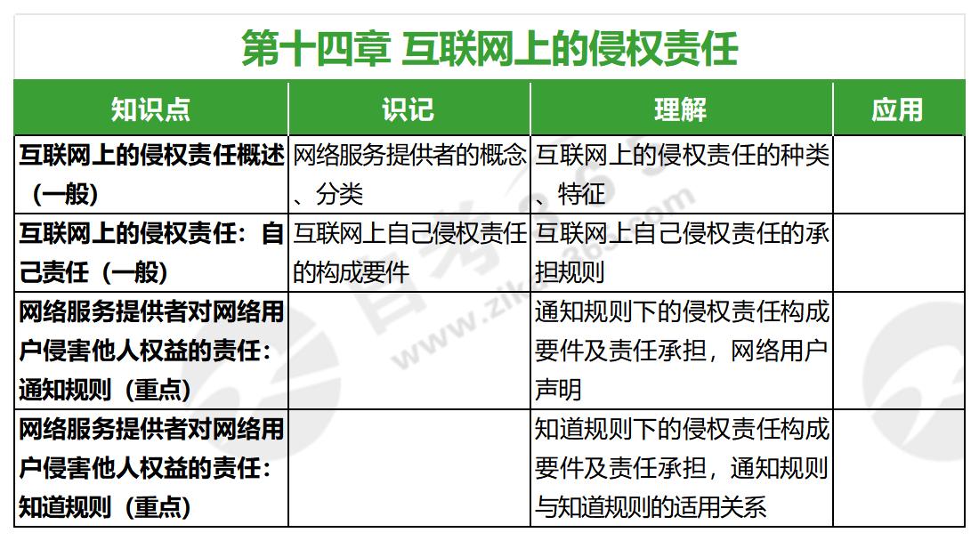 識記,就是要牢記那些名詞、概念、規(guī)律,;理解,則是要深挖內涵,把概念、原理、方法都吃透;應用,得能將知識點聯系實際,用侵權責任法原理去分析、解決實際問題。