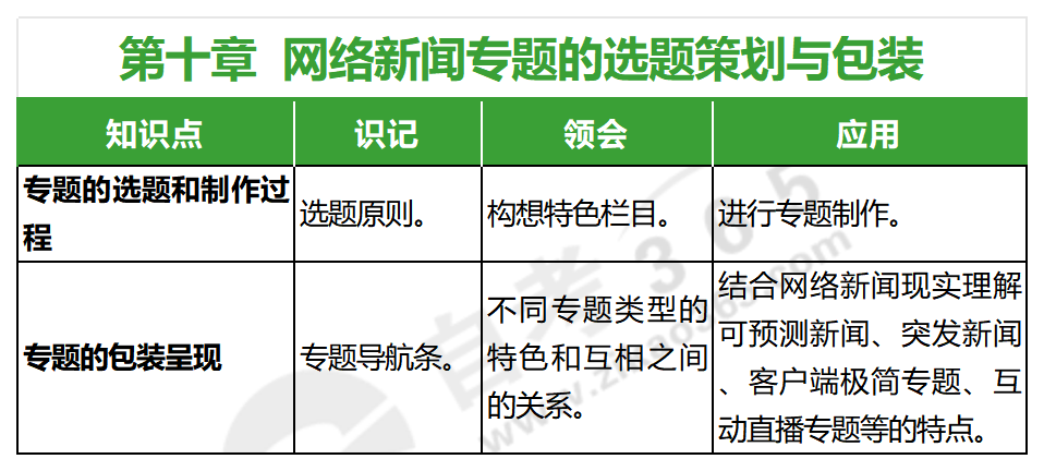 快來瞅瞅網(wǎng)校為你貼心準(zhǔn)備的2022年版網(wǎng)絡(luò)新聞采編與制作第十章的考核知識點(diǎn)吧!這些知識點(diǎn)可都是按照考試大綱精心整理的哦,保證讓你一看就懂,一學(xué)就會。