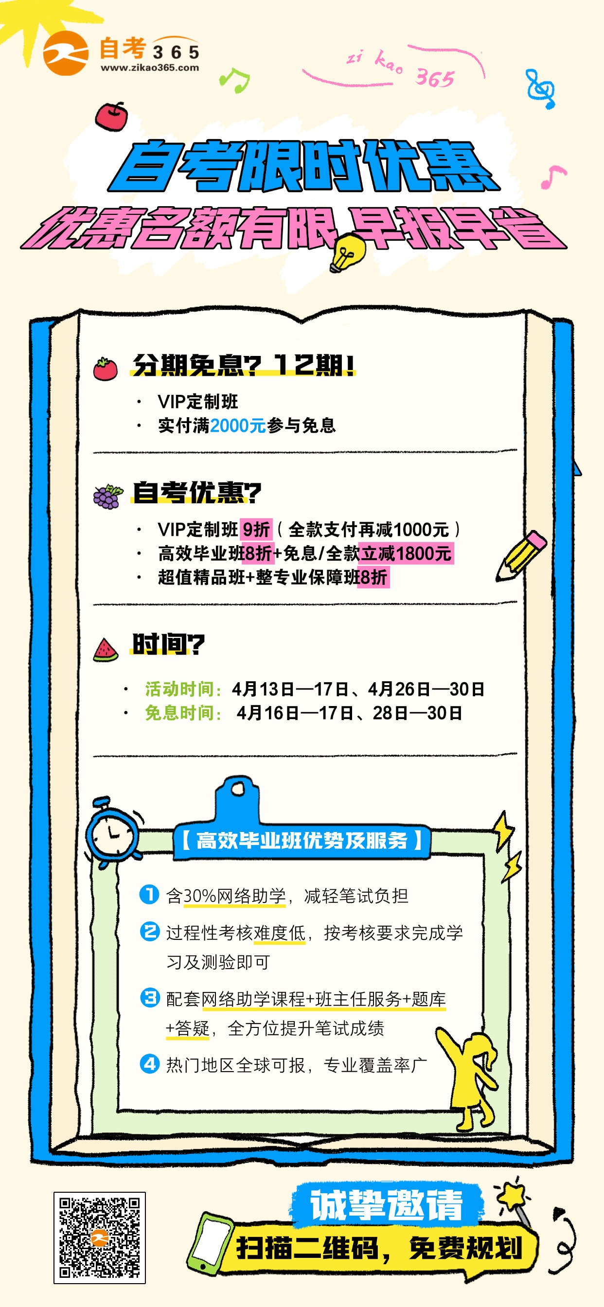 4月自考限時(shí)優(yōu)惠:優(yōu)惠名額有限,早報(bào)早?。?/h1>