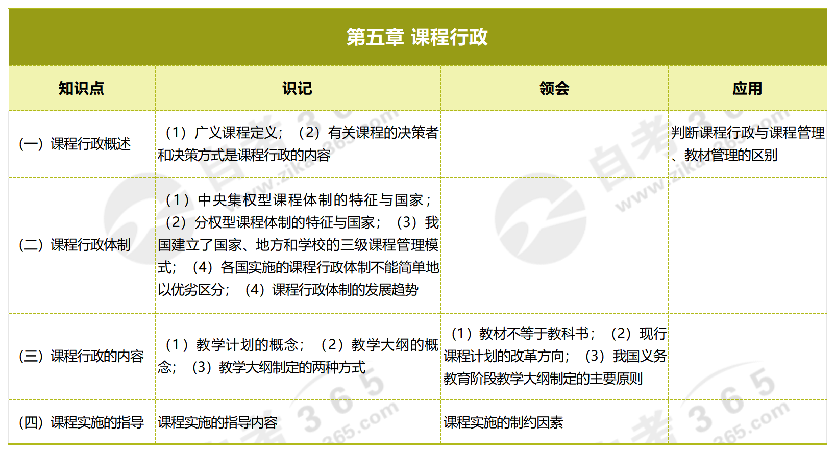教育行政學第五章主要闡述課程行政相關考點,包括概述、體制、具體內容、指導內容和制約因素等。這些考點有的要求學員識記,一般會以選擇題等相對簡單的題型出現(xiàn),有的要求學員深度領會和應用,一般需要考生完成應用類題型的解答??忌恍璋凑障鄳囊髮W習即可。