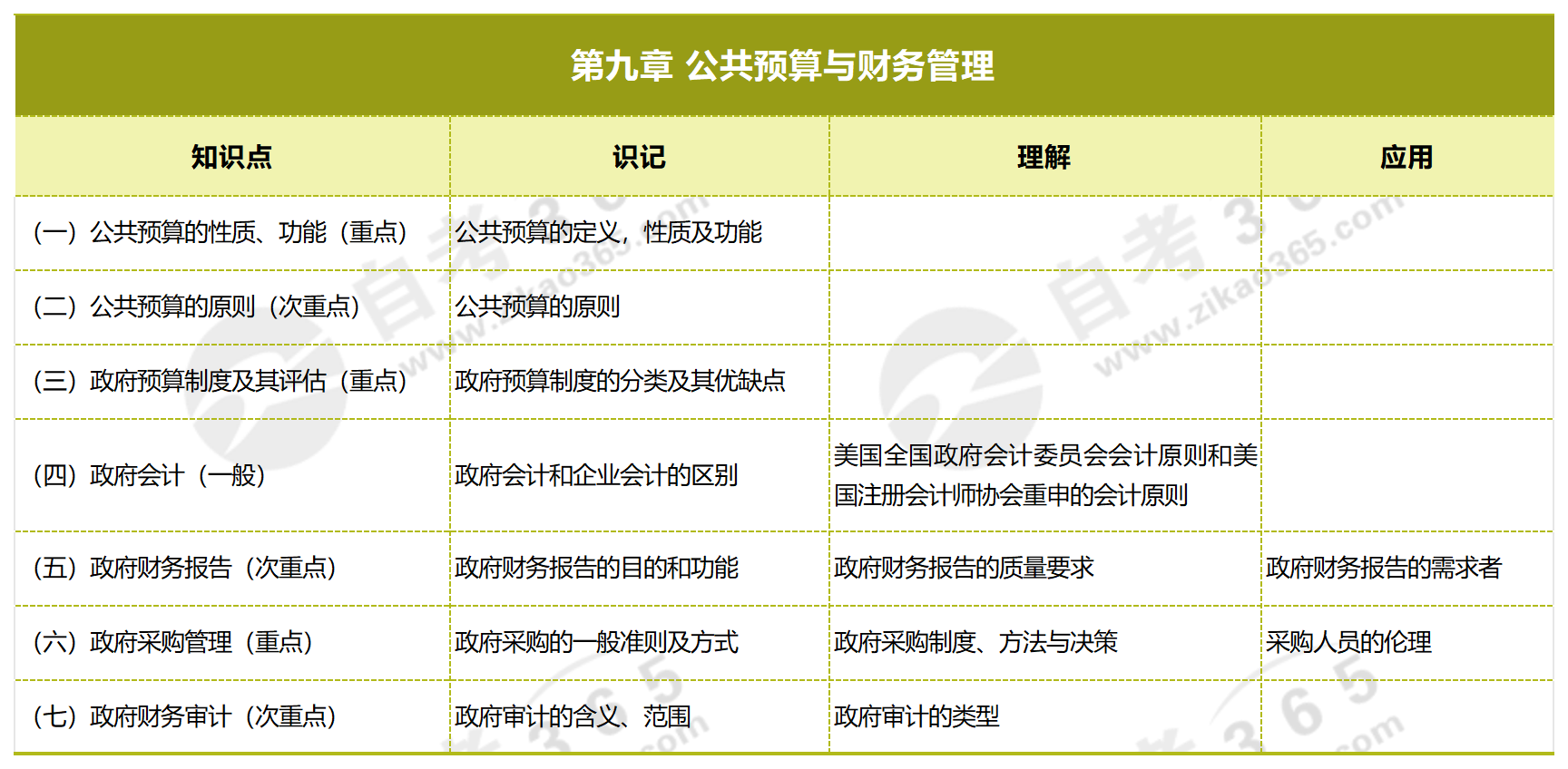 2024年自考公共管理學知識點框架:第九章 公共預算與財務管理