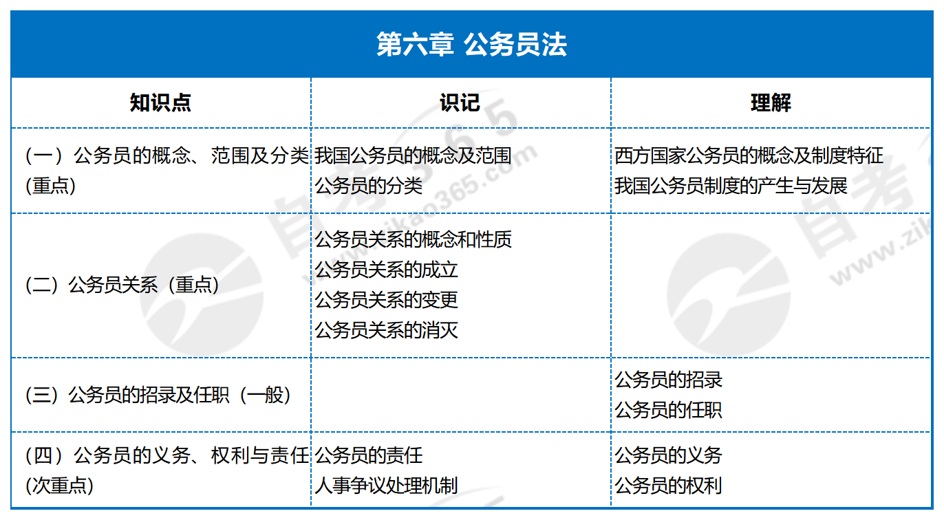 2024年自考行政法總論知識點框架:第六章 公務(wù)員法