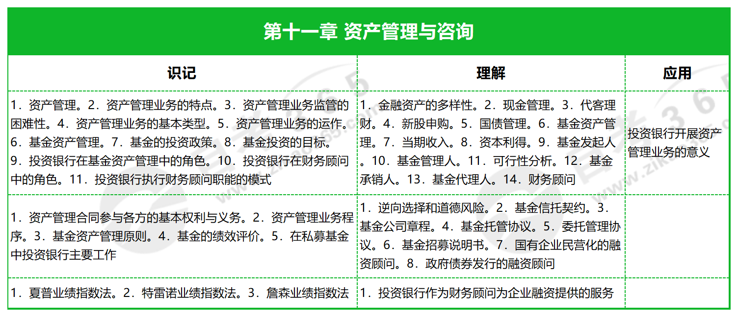 自考投資銀行學(2009版)知識點框架:第十一章 資產(chǎn)管理與咨詢