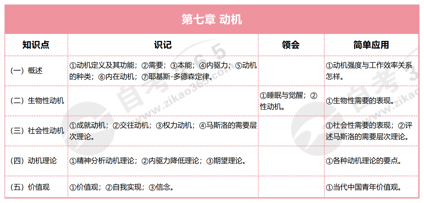 自考心理學導論(2015版)知識點框架:第七章 動機