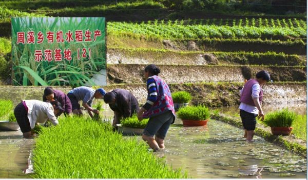 該鄉(xiāng)去年在青坪、大榜兩個村建成有機水稻示范基地,引導村民種植有機水稻,意圖探索出一條適合周溪山區(qū)的有機農(nóng)業(yè)發(fā)展之路。群眾反響強烈,踴躍參與,經(jīng)過一年的探索發(fā)展,已初具種植規(guī)模,生態(tài)、有機、綠色、無公害的觀念深入人心。青坪村6社社長高方興是種田老手,去年申請了5畝的種植指標,由于不能施用化肥農(nóng)藥,產(chǎn)量略有降低,但一畝也有1100斤的產(chǎn)量,能加工成精品稻米約800斤,按照5元一斤計算,他這一年只種植水稻收入就有2萬余元。