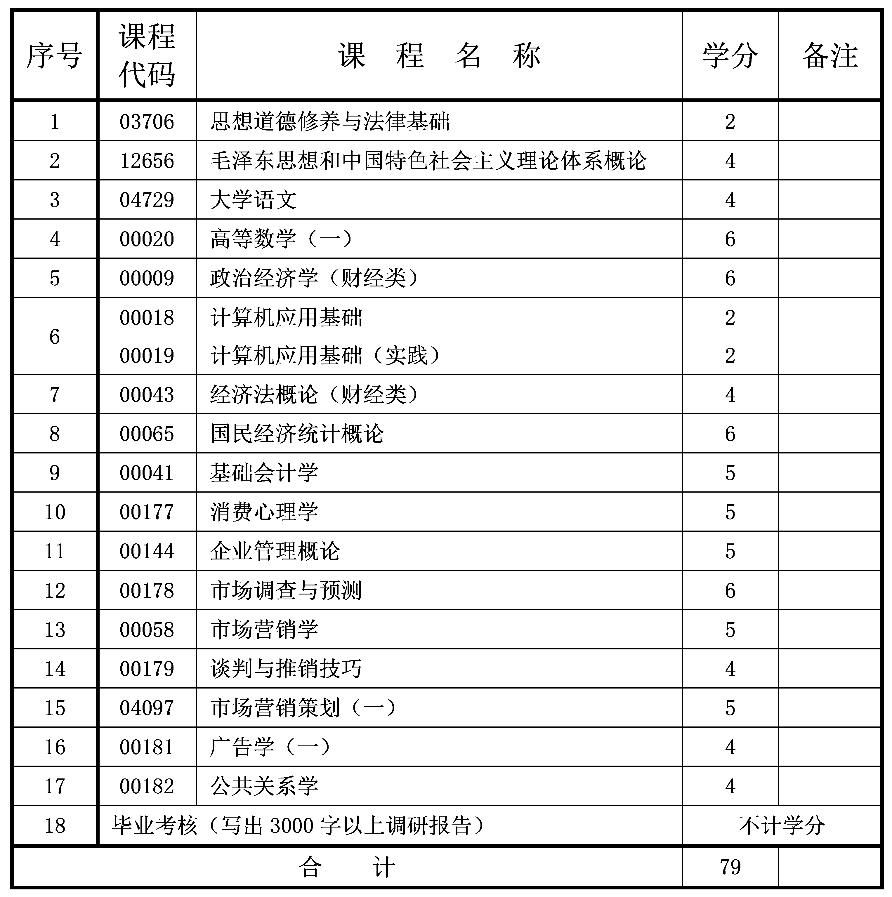 2022年10月重慶自考專科市場營銷專業(yè)計劃